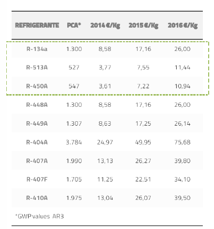 GAS DE LA INSTALACIÓN R513A vs R410A